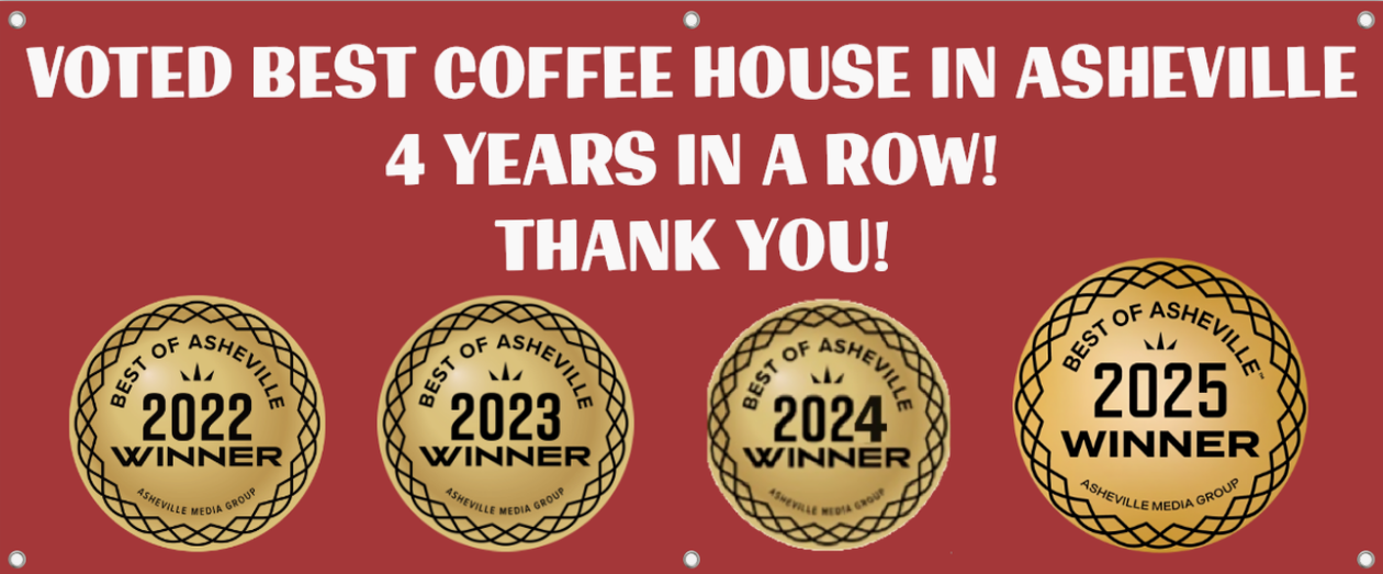 We are so very proud and grateful that our customers have voted us the best coffee shop in Asheville for the last 4 years!